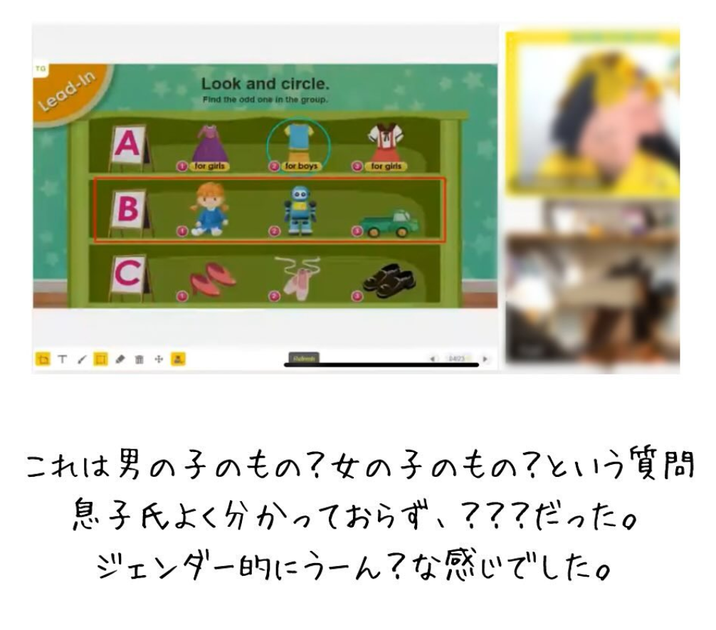 あとは彼、彼女、家族などの名称を学ぶレッスンがあったんですけど、これはちょっとウーンでした・・・。