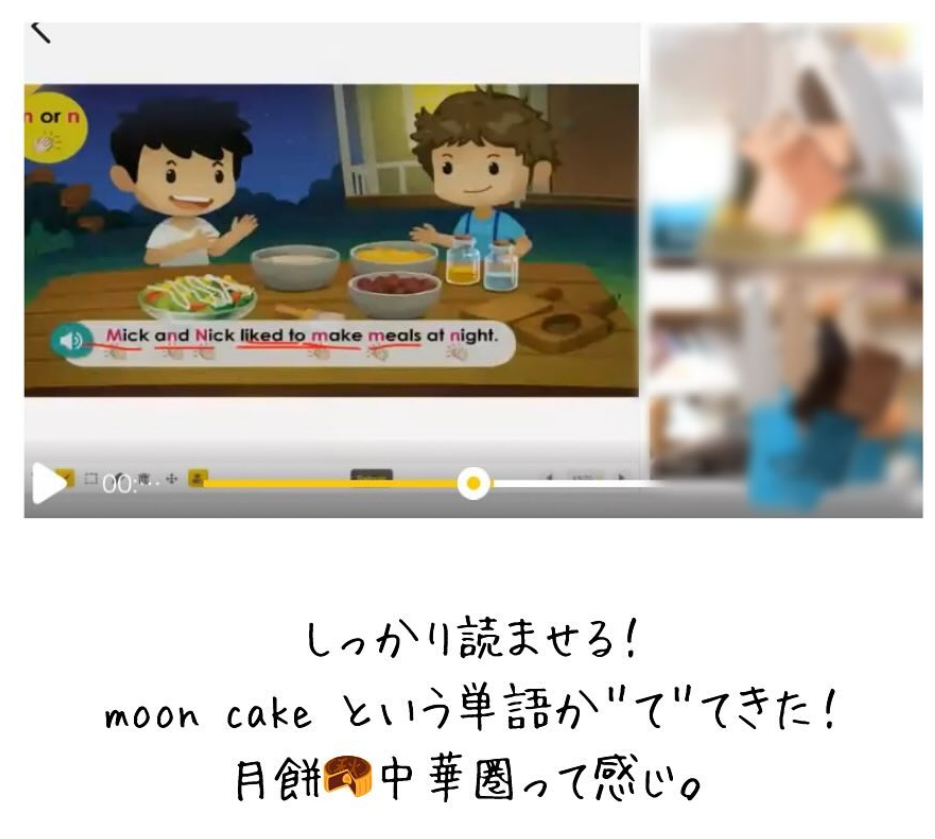 9匹のネズミが月餅を食べてどっかに逃げた~みたいなチャンツの例文があったんですけど、それを覚えていたようで中華街行ったときに月餅を見つけて👦「I know! Nine mice ate moon cakes!!」と言っていました。